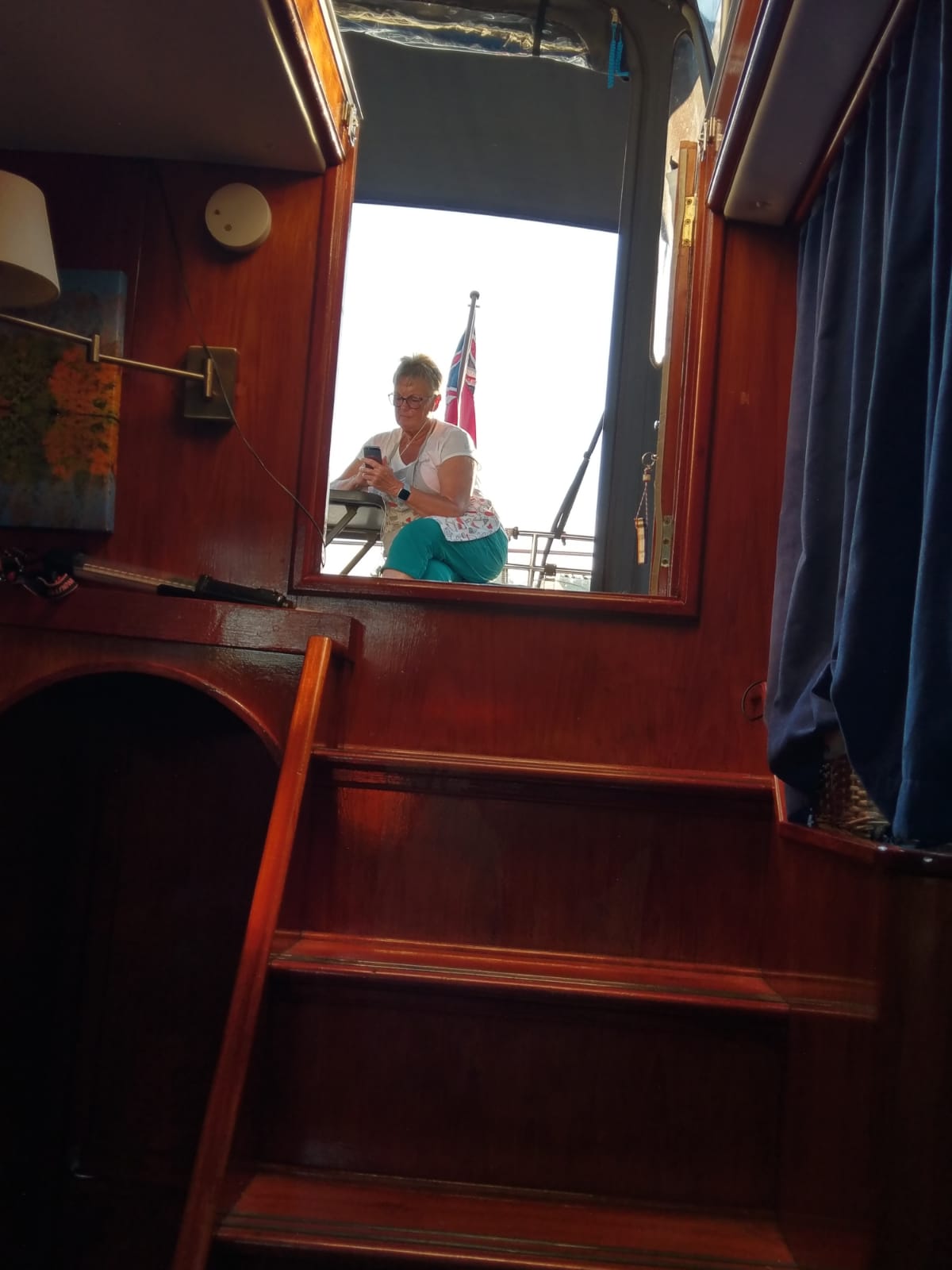 Along the way we’ve met some lovely people too and enjoyed some social times with them. One such lovely couple were Andy and Voirrey Johnson. We met them a few times, below at Heukelem near Leerdam they invited us for supper and we had a lovely evening with them. A day or two later they were a great help both practically and with moral support when we had an emergency in the form of a water filled engine room from a burst pipe joint! Voirrey is from the IOM and gave us some Manx kippers which we had for breakfast one day, delicious!!