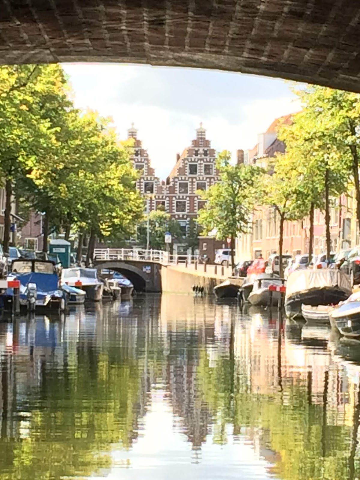 We were thwarted by an unexpected and unusual effect of the European heatwave this summer as we never did get into Amsterdam by boat. At the time we had wanted to do so, none of the opening bridges were functioning because the heat had made them swell so that they could not be opened or if they were they would not close again! However, we visited the vibrant city by train for the day on several occasions, albeit one at a time on alternate days! It was far too hot to leave the dogs on board with the boat closed up, so we had “turns eaches!!” Little did we know that this situation would continue for as long as it did, there were many more occasions when it was too hot to leave them and often too hot to walk them. The main thing is we have come back still with two dogs, one of whom we keep thinking won’t make the next trip but he’s still going (not strongly though) and a couple of weeks ago he reached the grand old age of 14!