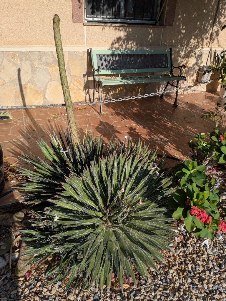 And to finish this time, we first noticed on 7th October that one of our succulents had sent up this flower spike. It’s an Agave filifera and only flowers once in its lifetime and then dies!