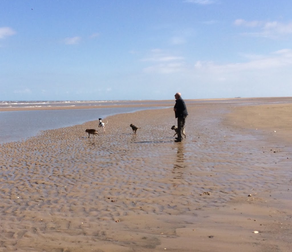 On to Norfolk, we caught up with Barbara who we had last seen at my mum’s funeral 20 years ago. Barbara was a vet before she retired and used to practise in Porthmadog where we met on our many caravan holidays in Snowdonia. We had lunch with them and a good old trip down memory lane, then a bracing walk on the beach at Hunstanton with the dogs. It was another chance to meet Sue and her borders again as she lives nearby so that was a good day with all 4 dogs having a whale of a time together on Thornham beach.