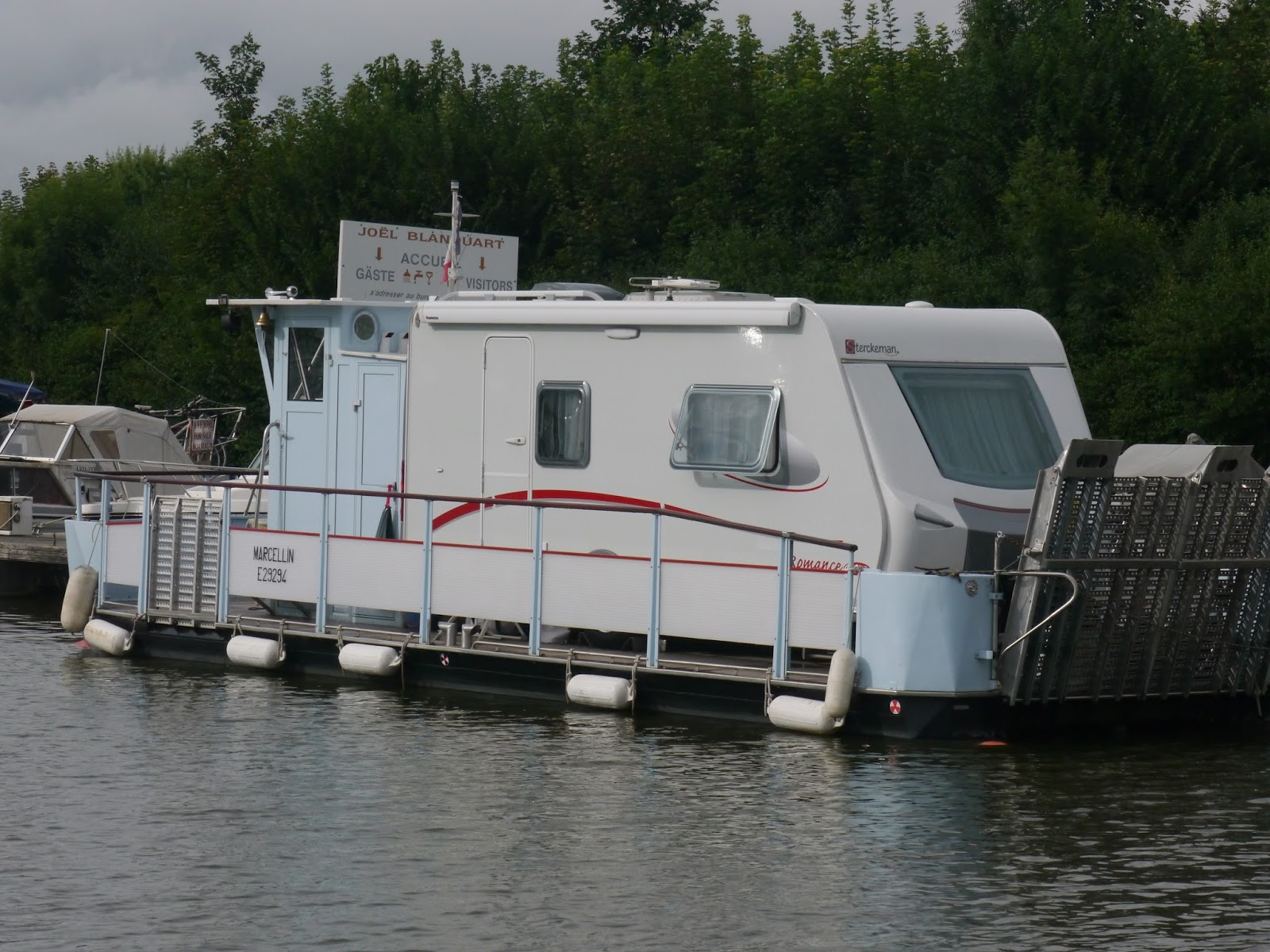 Best of both worlds? This arrived on the visitors’ pontoon one day. Must be a pig to steer on a windy day! |