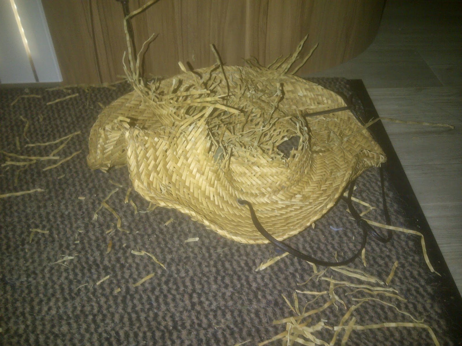 Tastefully restyled by Dash, Nigel’s sunhat bought during our first year cruising!